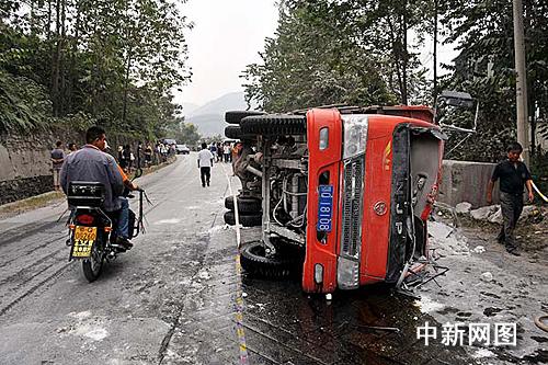 據(jù)恩施市交警大隊有關(guān)人員介紹,當天13時30分,一輛載有8人的恩施雙龍客運公司面包車(鄂Q18893)前往白楊坪鄉(xiāng)熊家?guī)r,行至富民水泥廠上坡段時,突遇滿載石灰的農(nóng)用車(鄂Q18108),農(nóng)用車司機忙向右打方向盤,從而導致農(nóng)用車側(cè)翻,壓住面包車同時還向前滑行并導致重大交通安事故發(fā)生。