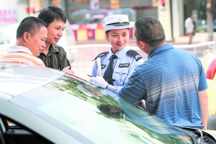 如同網(wǎng)上視頻一樣,交警MM對(duì)每位司機(jī)都是微笑著先敬禮、然后再開(kāi)單、處罰,被處罰的司機(jī)們看上去心服口服,居然也都掛著微笑。