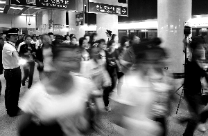 前夜11時30分,4號線西直門站廳內(nèi),京港地鐵公司和北京地鐵運營公司進(jìn)行首次聯(lián)合演練,模擬斷電后的應(yīng)急疏散。4號線開通后,北京地鐵結(jié)束了只有一家運營商的歷史,京港地鐵公司負(fù)責(zé)的4號線和北京地鐵運營公司負(fù)責(zé)的2號線、13號線在西直門站3線交匯。