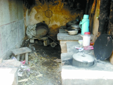 老人有關(guān)節(jié)炎,但一家的重?fù)?dān)都?jí)涸谒缟。李廣的老伴去年冬天下山采購(gòu)年貨時(shí)摔倒了,摔傷了頭和胳膊,除了基本的自理外,已經(jīng)不能做重活了。因家庭貧困,沒(méi)錢買更好的藥,現(xiàn)在老伴主要靠吃一些止痛藥來(lái)遏止病痛。殘疾智障的兒子更需治療。他們?cè)谏巾敱俪龅娜齼僧地,已無(wú)法養(yǎng)活這個(gè)家。