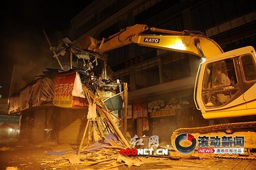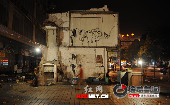 這位工作人員說,南門口緊臨黃興南路商業(yè)步行街,人流量和車流量都相當(dāng)大,直到晚上12點(diǎn)還很熱鬧。被拆遷的這棟房屋就在路邊,如果白天拆除,對(duì)行人和車輛恐怕都不太安全。