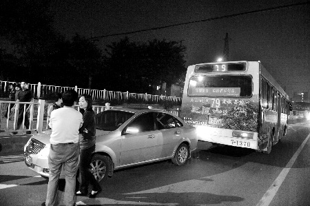 一輛79路公交車(chē)逆向倒車(chē),車(chē)屁股撞上了正常行駛的別克車(chē)屁股,9月25日晚8點(diǎn)左右,這一奇特的撞車(chē)景觀出現(xiàn)在二環(huán)支路的立交橋附近。
