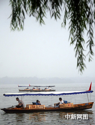 “坐船、坐船,來杭州不坐船可是要遺憾的!”盡管杭州陰雨綿綿,但在西湖斷橋碼頭還是聚集了一大批興致勃勃的中外游客,丁慧軍全然不顧已經(jīng)濕透的船工服,仍是賣力地吆喝著。熱情的召喚聲很快聚攏了一批游客,面對他們的討價還價,丁慧軍一指手劃船說:“一個小時80元,明碼標價,童叟無欺!