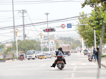 10月8日,一位從華山大街向東行的外地司機(jī)把車停在民生街丁字口的紅燈前,不知道如何是好。原來(lái)前方的紅燈亮著,但是旁邊的藍(lán)牌子上卻寫(xiě)著“紅燈亮?xí)r 直行通過(guò)”,他看著身邊的車既有飛馳通過(guò)的,還有停車觀望的,更多的是半停半走猶豫不決的。所以不知道該怎么辦。而渭南的出租車司機(jī)老胡說(shuō),這個(gè)紅綠燈堪稱“最!,設(shè)立得根本就不科學(xué),設(shè)立這么一個(gè)牌子,難道旁邊還要再加個(gè)牌子說(shuō)綠燈亮?xí)r繼續(xù)通行?當(dāng)?shù)厝舜蠖济靼,這個(gè)紅綠燈設(shè)立的目的是限制向北拐的,只要把紅綠燈設(shè)置個(gè)向北的箭頭就可以了,而弄個(gè)紅燈加個(gè)說(shuō)明有些自相矛盾。記者查閱《中華人民共和國(guó)道路交通安全法》,第二十六條規(guī)定:“交通信號(hào)燈由紅燈、綠燈、黃燈組成。紅燈表示禁止通行,綠燈表示準(zhǔn)許通行,黃燈表示警示!