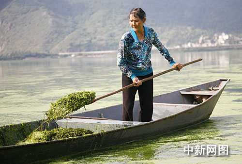 滇池是中國第六大淡水湖,也是目前中國污染最嚴(yán)重的內(nèi)陸淡水湖泊之一。從一九八八年開始,無論風(fēng)吹日曬,每天早上七點(diǎn),昆明西山區(qū)福海街道辦事處新河社區(qū)巾幗打撈隊(duì)的隊(duì)員都會劃著船進(jìn)入滇池草海,打撈垃圾和水藻。