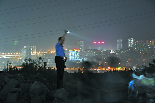 “天很黑,很多行人都看不清路,他就一直高舉著手電筒,好讓大家安全通過(guò)……”前日,大渝網(wǎng)Q吧出現(xiàn)了一篇名為《人民警察》的帖子。發(fā)帖人“張力”在帖子里展示了一組照片,照片里,幾名警察正在疏導(dǎo)觀看焰火晚會(huì)的市民,其中,還有一名民警站在路邊的亂石堆上,一直單手高舉著手電筒為行人照路。照片出來(lái)后,這位民警受到了很多網(wǎng)友的稱(chēng)贊,被尊稱(chēng)為“燈塔民警”。