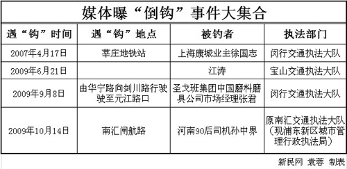 而上海當(dāng)?shù)匾晃焕纤緳C(jī)則透露,“倒鉤”執(zhí)法在上海其實(shí)很普遍,“因?yàn)檎娴暮谲嚭茈y抓,所以就找個(gè)‘釣鉤’來釣?zāi)闵香^,讓你做黑車、罰點(diǎn)款。整個(gè)上海市至少有上千個(gè)‘釣鉤’!