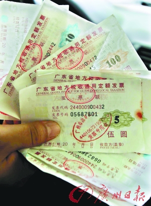 另外一名“干了十幾年”的老頭則直接告訴記者,他的票都是假的,都是“克隆票”,記者在他提供的發(fā)票上看到,他的發(fā)票跟一般販子賣的不同,多了存根聯(lián),但是比真票要短和窄,全部蓋了“廣州市越秀區(qū)新**海鮮酒家”的發(fā)票專用章。記者用手摸溫變油墨標(biāo)志,標(biāo)志也能變色,不過與真發(fā)票對(duì)比起來(lái),標(biāo)志顏色要淺一些,變色效果也不明顯。
