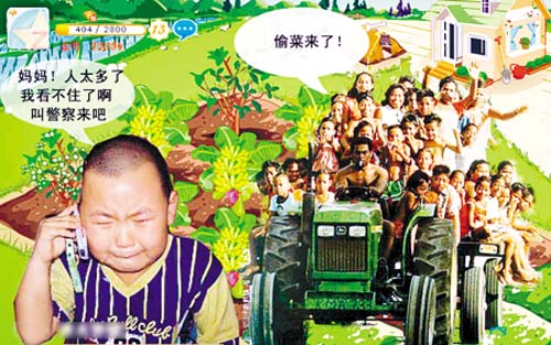在重慶,一對情侶癡迷網(wǎng)上種菜,男友負責種,女友負責收,因有一次女友忘記在半夜去幫男友“收菜”,男友竟提出分手;今年7月初,浙江先后有兩名女公務(wù)員因上班時間在網(wǎng)上玩“種菜”游戲,連飯碗都丟了……在部分大人癡迷玩這類游戲時,個別小孩也被深深吸引。媒體曾報道,一名3歲的小女孩,因癡迷類似偷菜的網(wǎng)絡(luò)游戲難以自拔,讓家人煩惱不已。