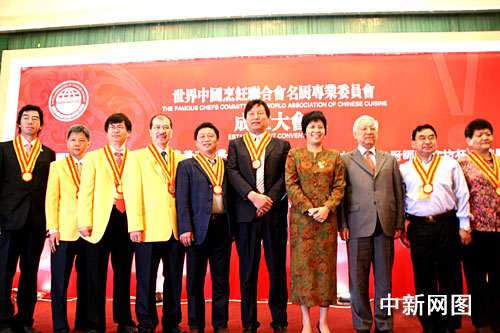 世界中國烹飪聯(lián)合會名廚專業(yè)委員會今年一月經(jīng)國家批準,正式注冊,名稱確定為“世界中國烹飪聯(lián)合會名廚專業(yè)委員會(Famous Chef Committee of the World Association of Chinese Cuisine)”。簡稱“世烹聯(lián)名廚委”,作為世烹聯(lián)下設的二級機構同樣將辦公場所設在北京。旨在為加強國際中餐廚師的交流,提高中餐烹飪技藝水平及中餐廚師的國際地位。圖為楊柳會長與首屆委員們合影。