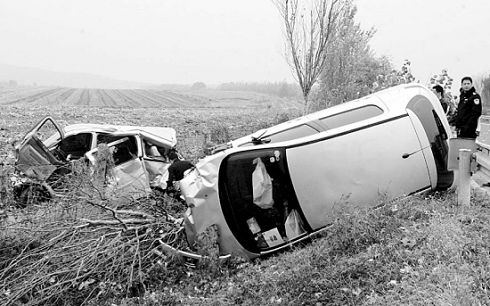 10月26日上午9點(diǎn)20分左右,在沈丹高速公路20公里處沈陽方向發(fā)生一起交通事故,一輛標(biāo)致307轎車與一輛同向行駛的微型面包車撞在了一起后,一同沖下路基闖入了高速公路東側(cè)的田地中。車禍造成微型面包車上的正副駕駛兩人死亡,其余4人不同程度受傷。死亡的是夫妻倆,從本溪回昌圖老家奔喪,沒想到在路上發(fā)生了這樣的不幸。