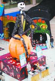 沈陽(yáng)中街的一個(gè)大型商場(chǎng),“鬼怪”儼然變成促銷(xiāo)手段,“恐怖屋”、“整蠱屋”、“挑戰(zhàn)僵尸競(jìng)技場(chǎng)”悉數(shù)亮相。記者看到,促銷(xiāo)員都身著長(zhǎng)及腳面的黑袍,從脖子到小腿處是一副完整的白骨圖案。冷不防一看,挺嚇人的。
