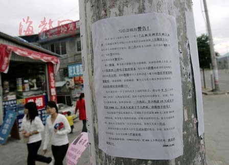 “寫給盜賊的警告!”昨日,福建農(nóng)林大學(xué)門口的公交廣告牌、電線桿上,貼出多份警告信,引來許多路人駐足。失主為何會想到給小偷寫警告信,又是因為什么?