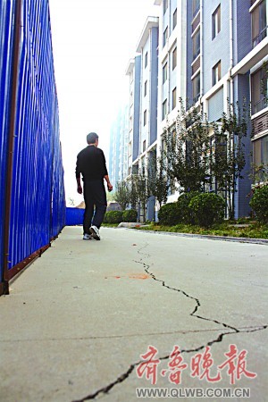 先是樓房外圍地面大范圍下陷,外墻與地面接合處的裂縫寬處達(dá)兩厘米,樓前的路面也出現(xiàn)了十余米長的裂縫,后來由于地面下陷,墻外的燃?xì)夤艿酪惨蜃冃纹屏,家住?jì)南建新路中段的泉景天沅·秀園10號樓居民眼望著樓前僅7米遠(yuǎn)的新樓盤施工工地所帶來的影響,寢食難安。