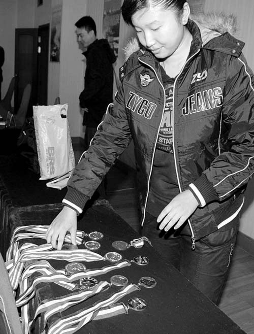 這位叫曹莉燁的女孩告訴記者,自己7歲習(xí)武,畢業(yè)后一直參加集訓(xùn)和比賽,因此才在畢業(yè)的第二年來(lái)報(bào)名。當(dāng)記者詢問(wèn)她曾參加過(guò)什么比賽時(shí),她拿出了十多塊金牌。