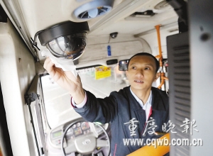 昨上午,記者在白公館起點(diǎn)站,看到了剛安裝好攝像頭的210路公交車。