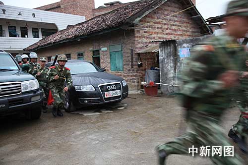 石順兵殺人后逃至一座方圓三平方公里、名為“大紅山”的荒山上藏匿。當(dāng)日下午,河池市武警官兵、公安民警等四百多人集結(jié)在山上進(jìn)行地毯式搜山。下午四點多,幾名武警發(fā)現(xiàn)山上一塊巖石下的草叢中竄出一人,其見到武警后又立即回竄,三名武警遂躍上前去。面對三個黑洞洞的槍口,石順兵舉起雙手說:“我投降!”