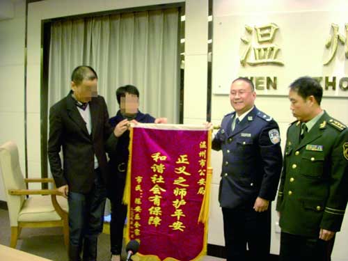 懷著這樣的心情,昨天下午,陳某特地來到溫州市公安局,給公安干警們送上了一面錦旗以示感謝。