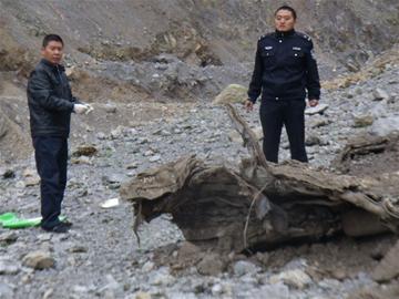 接到報案后,桑棗派出所民警迅速到達現(xiàn)場展開勘察。在現(xiàn)場,他們發(fā)現(xiàn)一輛壓扁的白色汽車,其實也只能算汽車的一部分了:車體和輪胎已經(jīng)分離,輪胎已經(jīng)爆裂,輪轂上包裹著厚厚的泥沙。車輛被山石擠壓,已經(jīng)嚴重變形,車型和車牌號都無法辨清,只能判定為一輛白色小轎車,從外形上看像北斗星小轎車。