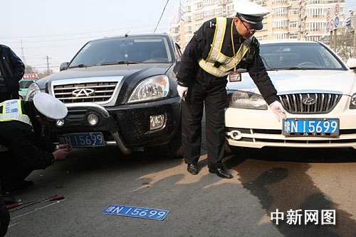 據(jù)交警二大隊(duì)嚴(yán)管街中隊(duì)長梁輝介紹,象這種套牌的嚴(yán)重交通違法行為,應(yīng)將車輛暫扣,收繳非法號牌,并處于2000元以下罰款。完