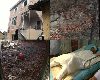 在裝配火藥的房間里面,記者見到了部分制造炮竹的原材料和工具。據(jù)了解,在這個房間內(nèi)裝配好火藥之后,再由孩子們安裝引信,事故死傷的13名小學生最小的只有7歲,最大的14歲。其中燒傷面積達90%以上的5人,燒傷面積55%至78%的4人,燒傷面積12%至40%的3人。1名兒童在送往醫(yī)院后經(jīng)搶救無效于12日22時30分死亡。而燒傷的孩子將經(jīng)歷2到4個星期感染期的生命考驗,在感染期內(nèi)仍然隨時有生命危險。