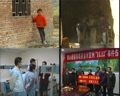再來看看看這盤空炮筒,很難想像當(dāng)別的同齡人在學(xué)習(xí)和玩耍的時(shí)候,楊會村的十幾個(gè)小孩卻擠在楊萬文家的小屋子里,一個(gè)一個(gè)往爆竹上插引信。在經(jīng)濟(jì)不發(fā)達(dá)的賀州農(nóng)村,一天一塊多錢的工錢對幾歲十幾歲大的孩子來說挺有誘惑力的。不過,他們卻為此付出了血的代價(jià),F(xiàn)在爆炸事故中受傷的孩子分別被安置在賀州、桂林、南寧的三家醫(yī)院。他們的傷情如何?是否能度過危險(xiǎn)期?我們的記者趕到了桂林市181醫(yī)院。