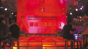 昨天晚上,天下著細(xì)雨,渝中區(qū)上清寺附近的酒吧里,同性戀者舉行世界艾滋病日文藝晚會(huì),我市百余名男男同性戀聚集在此。記者以彩虹工作組防艾志愿者身份,走近男男同性戀者,所見所聞,發(fā)人深省。