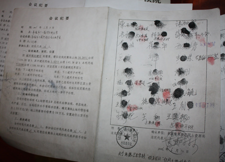 該《會(huì)議紀(jì)要》還稱:“全村村民代表總數(shù)30人,參加會(huì)議村民代表總數(shù)26人,占全村村民代表總數(shù)87%。”其后,在“同意征收集體土地的村民代表并按手印如下”之后,便有26位村民代表簽字和按的手印!稌(huì)議紀(jì)要》最后還有村委會(huì)和雙橋區(qū)國(guó)土資源局兩個(gè)部門的負(fù)責(zé)人的簽字和公章。