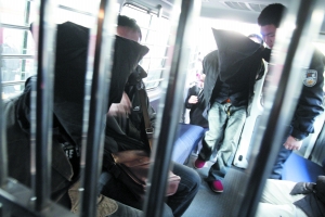 昨日,21名戴著手銬、蒙著頭套的電信詐騙案嫌疑人被押解回京。9月24日上午,昌平市民許某接到謊稱是上海市公安局和上海市銀監(jiān)會(huì)工作人員的電話,他們稱事主電話欠費(fèi),被牽扯進(jìn)一起國(guó)際金融犯罪,許某分兩次將85萬轉(zhuǎn)賬到騙子的賬戶。許某報(bào)警后,偵查員最終在西安將臺(tái)灣人劉茂安等21人控制。目前,21人均被刑事拘留。本報(bào)記者 周曉東 攝