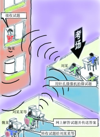 3月15日,陶某將劉某從考場內(nèi)傳輸出的試題交給魏某,魏某在網(wǎng)上將試題傳給劉某某等人,后劉某某、宋某等將答案通過作弊設(shè)備傳輸給考場內(nèi)的劉某。事后,陶某、魏某共獲酬勞人民幣15000元。案發(fā)后,魏某、陶某、宋某、徐某先后被抓獲歸案。