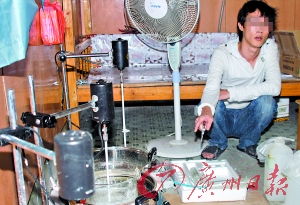 7月初,江門警方將“地主”販賣毒品的線索轉(zhuǎn)給佛山市公安局刑警支隊,但“地主”聞風潛伏,停止了制販毒活動。專案民警經(jīng)過近4個月的深入摸查,發(fā)現(xiàn)該團伙不但販賣毒品,還利用家庭式作坊從事制造毒品活動。