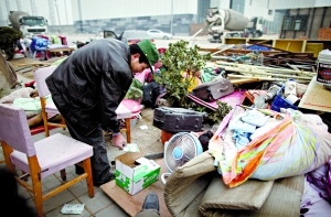 昨日上午9時許,百子灣家園東側(cè)空地上圍起警戒線。四五十名住戶不肯離去,身旁堆著鍋碗瓢盆、被褥、衣物等!胺孔颖徊鹆,晚上都不知住哪兒。”一位婦女坐在自家被褥上哭了起來。她懷中3歲女孩穿著單薄毛衣,凍得直流鼻涕。
