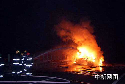 中新網(wǎng)寧波12月12日電(記者 何蔣勇 通訊員 來明)12日凌晨1時43分,位于杭甬高速浙江寧波出口不到2公里處發(fā)生一起慘劇,一輛奔馳小轎車與一輛大型掛車發(fā)生追尾后撞上公路護欄,奔馳車起火燃燒,事故造成車上兩人命喪火海。