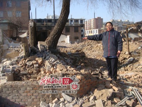 在還沒有簽定拆遷協(xié)議之前,張家口市退休女士民溫春梅的房子,被不明人士砸壞了門窗,派出所在查看現(xiàn)場后要求溫春梅去所里作筆錄,誰知等溫春梅從派出所回來后一看,這次房子竟然倒塌了一半,所有的家具都被埋了進(jìn)去,而剩下的兩間也變成了危房。而當(dāng)?shù)夭疬w辦對此的解釋竟然是:“在清理旁邊垃圾時(shí)不小心碰倒了”。11月23日,這樣的場景和解釋在張家口市橋西區(qū)戲劇性的上演。