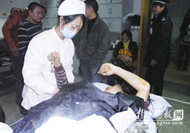 在中大醫(yī)院急診室,一女子拉著參與救人的兩位熱心女子,流著眼淚感謝她們。據(jù)她講,受傷的是其妹妹,叫朱貴娟,今年23歲,是一家婚紗店的攝影師。當時她下班騎車回家,沒想到遭遇車禍。多虧好心市民幫忙,兩位大姐陪同妹妹來到醫(yī)院看傷,她們還墊付了1000多元醫(yī)藥費。