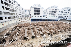 工人鐘代林介紹,“樓脆脆”曝光后,當(dāng)?shù)卣?個單元樓所在的40余戶住宅戶轉(zhuǎn)移并作了臨時安置;去年11月11日起,他們所在的拔山建筑工程有限公司進(jìn)場,開始對占地約5000平方米的房屋拆除和重建。
