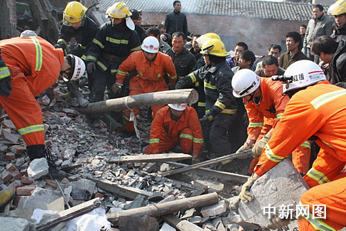 當(dāng)日下午13時(shí)14分,瑞安市消防大隊(duì)接到報(bào)警后,迅速調(diào)集公安現(xiàn)役消防隊(duì)及專(zhuān)職消防隊(duì)6輛消防車(chē)30名指戰(zhàn)員趕到現(xiàn)場(chǎng)實(shí)施救援。消防官兵到達(dá)現(xiàn)場(chǎng)時(shí),現(xiàn)場(chǎng)一片狼藉,百余平方米的房屋已成為廢墟,現(xiàn)場(chǎng)嘈雜聲混成一片,爆炸現(xiàn)場(chǎng)多處起火,火魔開(kāi)始向倒塌民房蔓延,而廢墟下面有多條生命等待著救援,現(xiàn)場(chǎng)情況十分危急。消防官兵立即出兩支高壓水槍對(duì)火勢(shì)進(jìn)行控制,同時(shí)救援小組迅速展開(kāi)營(yíng)救。