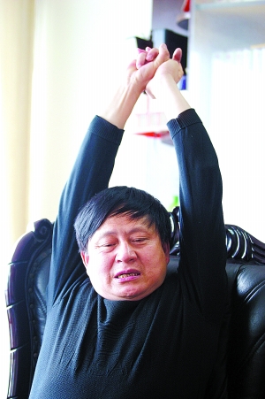 去年12月20日,北京一家賓館內(nèi),周立太撩起保暖內(nèi)衣,晨光通過窗戶,射在圓滾滾的肚子上。
