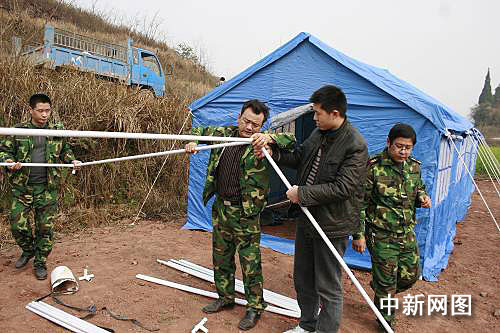 中新網(wǎng)遂寧安居1月31日電(霍潺 劉賢 吳晟偉 徐千舟) 本網(wǎng)記者在四川遂寧市地震現(xiàn)場(chǎng)了解到,目前相關(guān)部門正在加緊為受災(zāi)民眾搭建臨時(shí)安置帳篷。