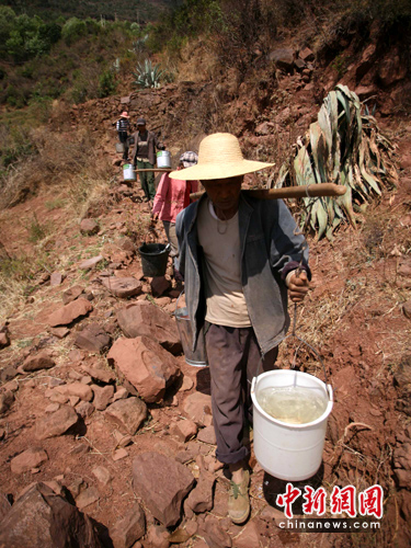 在忙碌的人群中一個(gè)佝僂的身影引起了記者的注意。那是80歲高齡且右腳患有輕微殘疾的殷蘭仙老人,她杵著拐杖沿著崎嶇的山路一步步地走到水源地。老人用記者不能完全聽(tīng)明白的彝語(yǔ)說(shuō):“修了水窖,我們吃水也就方便了。我還能動(dòng),還可以出力,做些力所能及的活。多一個(gè)人,水窖就可以早點(diǎn)完工。”說(shuō)到這里,老人的臉上流下了不知是喜悅還是無(wú)奈的淚水。(完)