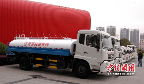 中新網(wǎng)武漢4月10日電 (記者 徐金波)在經(jīng)過緊張的生產(chǎn)、改裝后,由東風(fēng)汽車公司捐贈(zèng)的10輛多功能運(yùn)水車10日開赴云南旱災(zāi)區(qū),服務(wù)于災(zāi)區(qū)民眾的抗旱與生產(chǎn)。