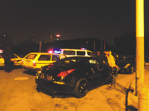 就在記者采訪的時候,4輛豪車又回到了奧體北門。大家停好車,紛紛下車抽煙聊天。記者急忙追了上去,只見在奧體北大門西側(cè)路面上,一字排開著4輛顏色不一的豪華跑車,車尾處留下了一道道長長的剎車痕跡,足見停車前的速度很快。4輛顏色不一的豪華跑車中,有三輛車子上沒有上牌照,有一輛車子車牌擋著。車上下來的都是年輕人,車手都是男的,每人身邊跟著一位大美女。車主們說這些跑車都是自己私車,個個都自稱是富二代,他們每個人所開的跑車都在80萬至100多萬之間,還不是最好的車輛。見此情況,記者立刻報了警,并拿出相機(jī)拍照采訪。