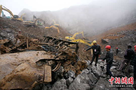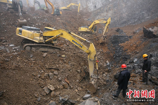 據(jù)介紹,搜救犬幫助確定位置后,繼10日17:30分發(fā)現(xiàn)一臺(tái)后,今天又在垮滑現(xiàn)場(chǎng)陸續(xù)發(fā)現(xiàn)3臺(tái)汽車,至此垮滑現(xiàn)場(chǎng)已找到5臺(tái)汽車殘骸。記者在現(xiàn)場(chǎng)看到,汽車大梁、駕駛室、發(fā)動(dòng)機(jī)全部支離破碎成了一堆廢鐵。10臺(tái)挖掘機(jī)正在不停的工作,F(xiàn)場(chǎng)兩位公安人員拿著照相機(jī)、攝像機(jī)正在汽車殘骸前取證。三位救援工作人員一邊指揮,一邊提醒挖掘機(jī)司機(jī)小心謹(jǐn)慎。樂山消防支隊(duì)的官兵也在查看現(xiàn)場(chǎng)情況,看能否發(fā)現(xiàn)被埋人員。武警樂山支隊(duì)的30余名官兵也做好一切準(zhǔn)備,一但發(fā)現(xiàn)情況將迅速趕赴清理現(xiàn)場(chǎng)增援。