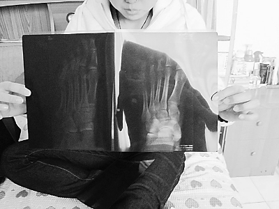 據(jù)李女士介紹,3月6日,她和丈夫一同去廣場(chǎng)南口金夫人婚紗影樓拍婚紗照。進(jìn)攝影棚后,攝影師要求她光腳坐在一臺(tái)鋼琴旁的長(zhǎng)板凳上拍攝。拍完這張照片后,攝影師又讓她往后站點(diǎn),由于婚紗有近2米長(zhǎng),正當(dāng)她起身往后退時(shí),長(zhǎng)長(zhǎng)的婚紗將鋼琴旁的長(zhǎng)板凳拖倒在地,板凳重重地砸在她的左腳腳趾上,她頓時(shí)感到萬(wàn)般劇痛。然而攝影師的助理只是簡(jiǎn)單問了問傷勢(shì),并買來(lái)云南白藥噴在她腳上,她忍著劇痛繼續(xù)拍完最后一組婚紗照。晚上10時(shí)許,她和丈夫回到家中,才發(fā)現(xiàn)腳腫得很厲害。經(jīng)在雁灘骨傷科醫(yī)院檢查,左腳第5根腳趾斷裂。