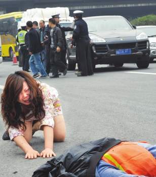 然而,昨日上午9點半,一輛黑色保時捷卡宴越野車把她永遠留在了清掃途中。