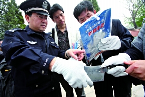 昨日,西城警方為提高全區(qū)112所中小學(xué)幼兒園的安保,為校園配發(fā)自衛(wèi)噴霧器和防割手套,與之前配發(fā)的警用鋼叉配合使用。