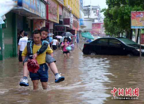 中新網(wǎng)長(zhǎng)沙5月6日電(肖前輝 袁平)連日的暴雨襲擊導(dǎo)致湖南局地出現(xiàn)嚴(yán)重災(zāi)情。婁底市新化縣水車鎮(zhèn)一名8歲小孩在暴雨摧塌的房屋中不幸遇難;由于強(qiáng)降雨后街道排水不暢,新化城區(qū)成“澤國(guó)”,街道被淹成了“河道”。