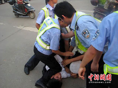 在場民警及協(xié)管員見狀合力奪走了該貨車駕駛?cè)耸稚系拇罂车,并成功將其制服扭送到石羊塘派出所,避免了一起襲警血案的發(fā)生。