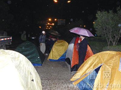 當(dāng)晚23時(shí)左右,由于雙方?jīng)]有達(dá)成一致,小區(qū)里的部分業(yè)主在小區(qū)外的馬路上“安營(yíng)扎寨”。