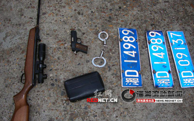 5月11日中午11時許,專門針對從銀行取款后的人實施搶劫的兩名冒牌警察,被衡陽市公安局南岳分局民警抓獲歸案。犯罪嫌疑人作案用的槍支、手銬、小車悉數(shù)被警方繳獲。